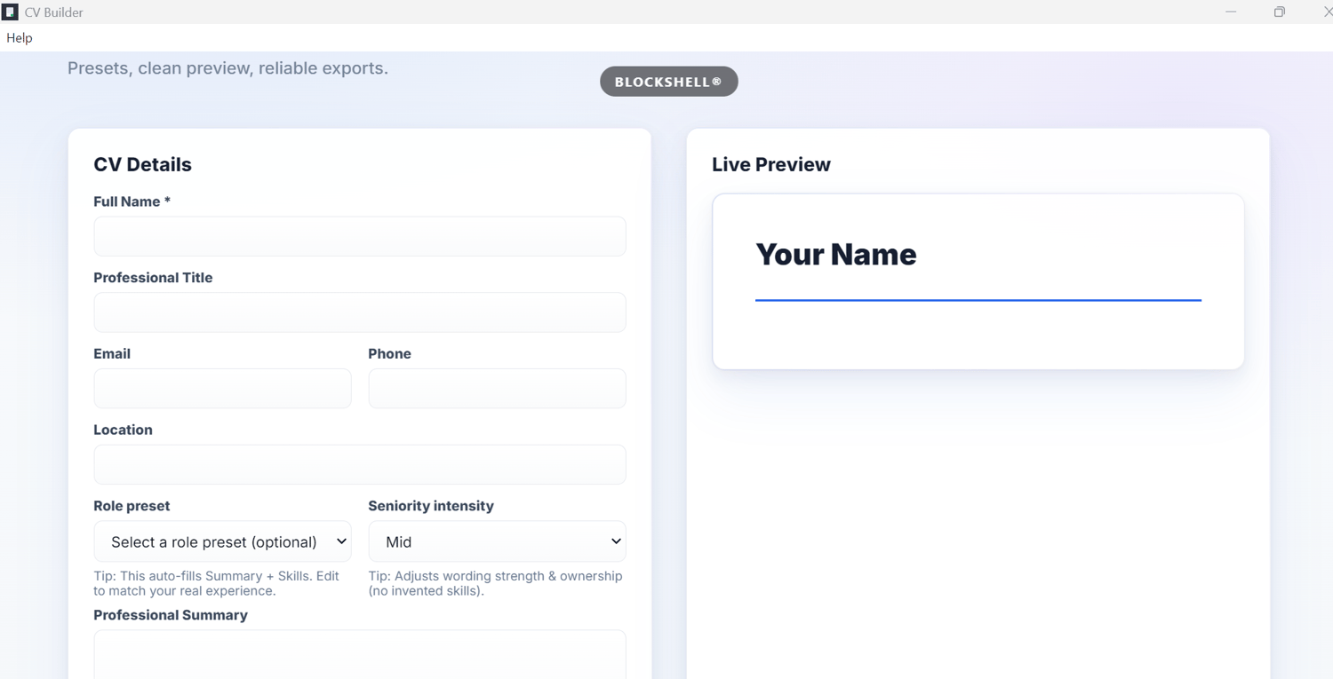 BlockShell® CV Builder: Create a CV That Gets You Interviews — Not Ignored