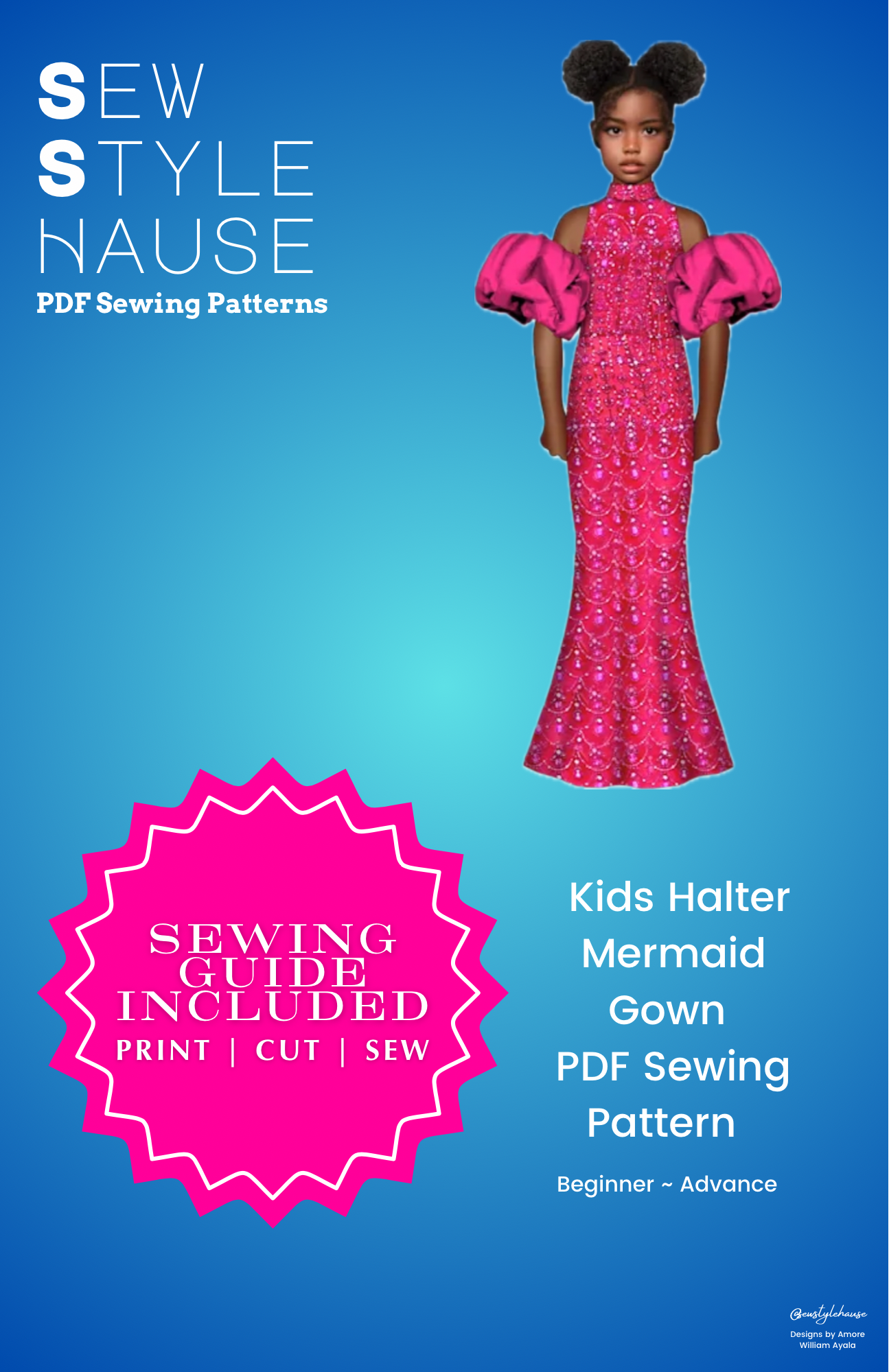 Kids Halter Puff Sleeve Dress/Gown PDF Sewing Pattern | Flower girl dress | Pageant dress | Kids prom