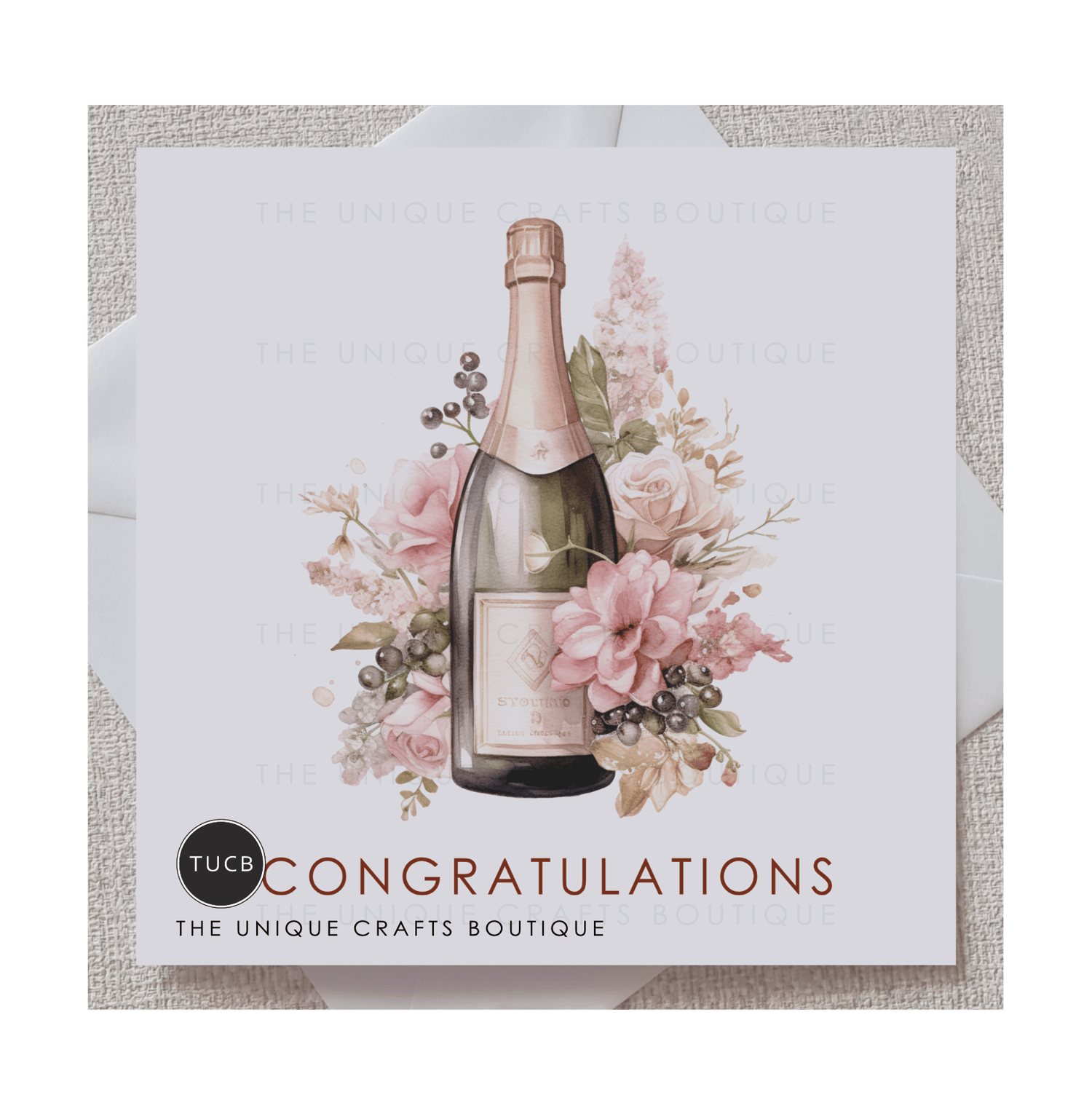 Printed with a stunning champagne bottle and surrounding flowers and the message 'congratulations' displayed across the bottom.