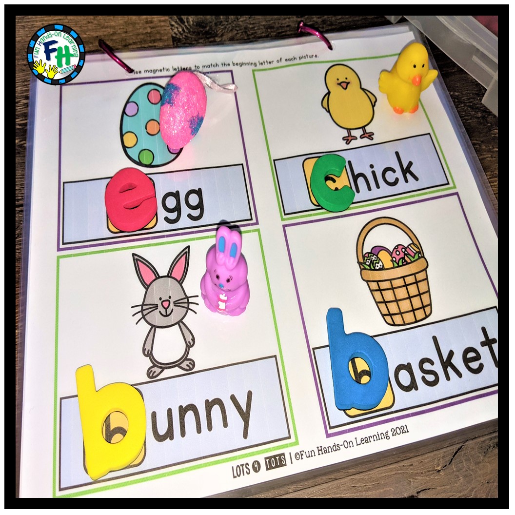 - Match letters, and the beginning sounds of the following words; egg, chick, bunny, and basket.