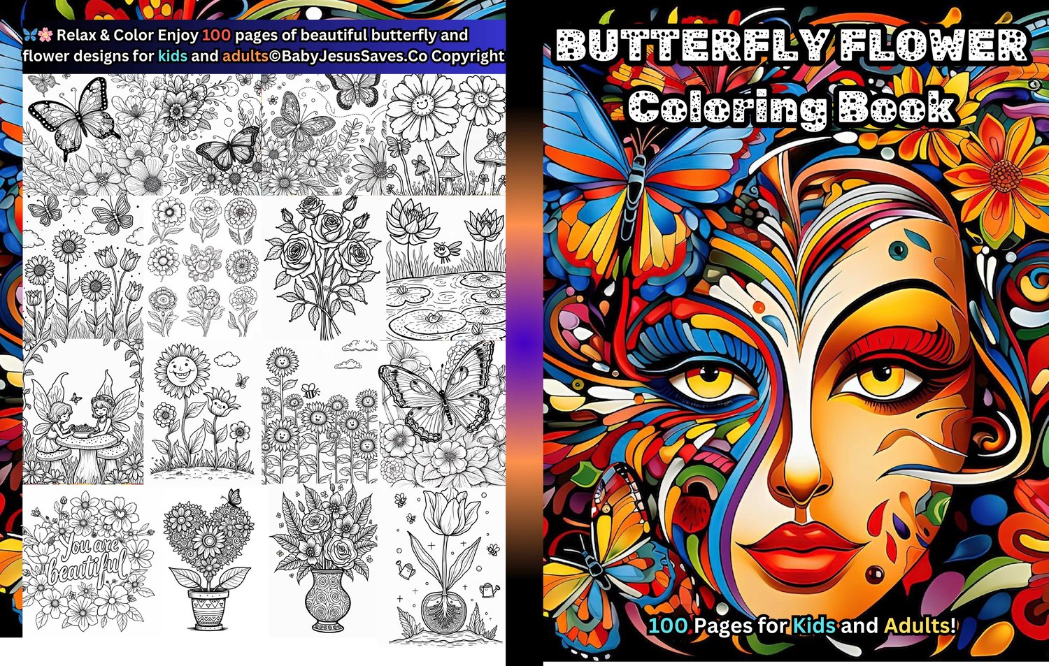 π¦ Butterfly Flower Coloring Book β 100 Pages π¦ Relax & Unwind + Free Cover PDF