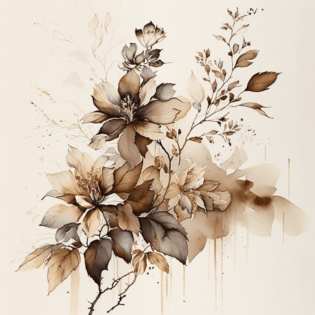 Context: neutral, brown, flowers, boho, pastel, watercolor
