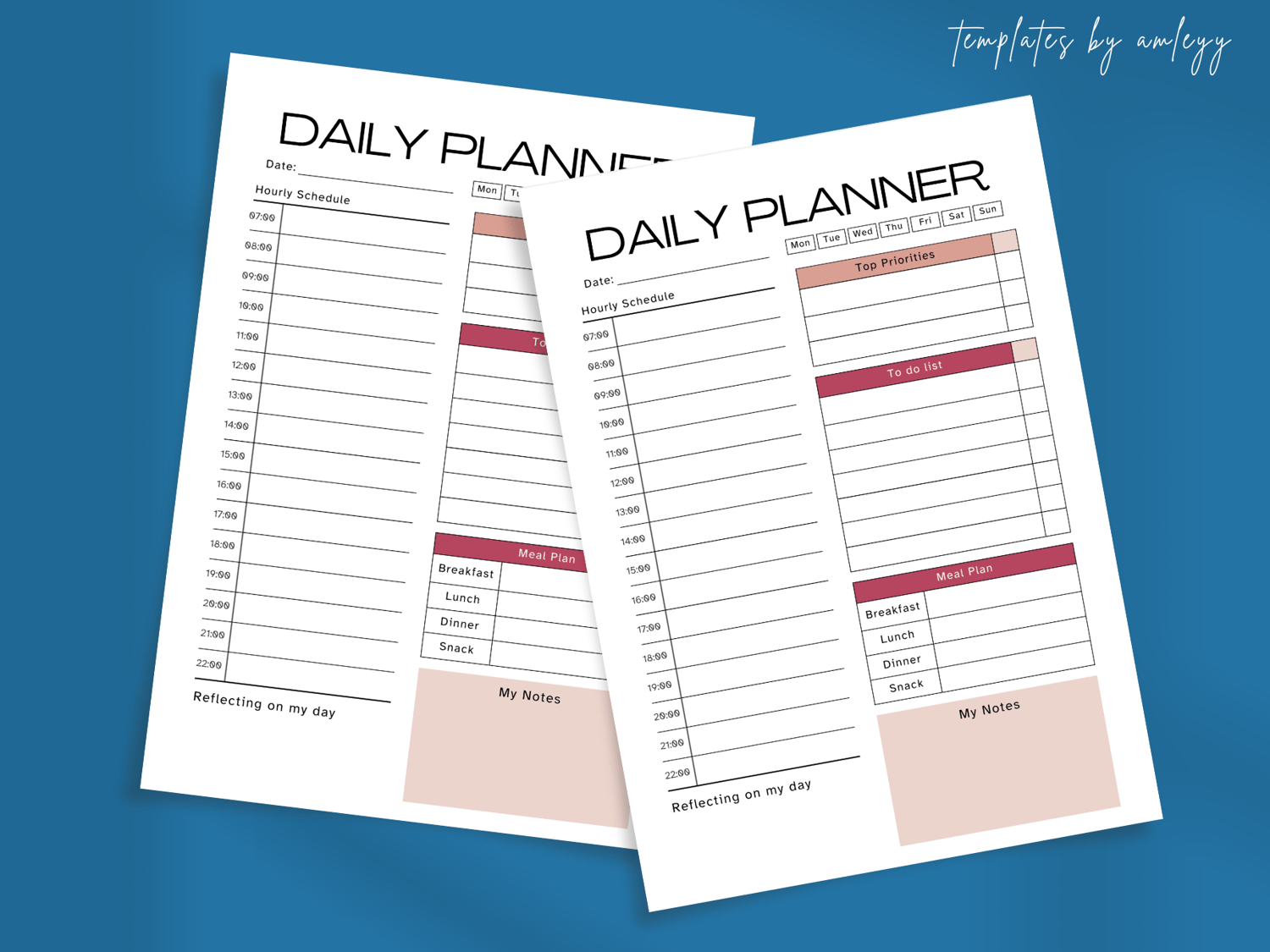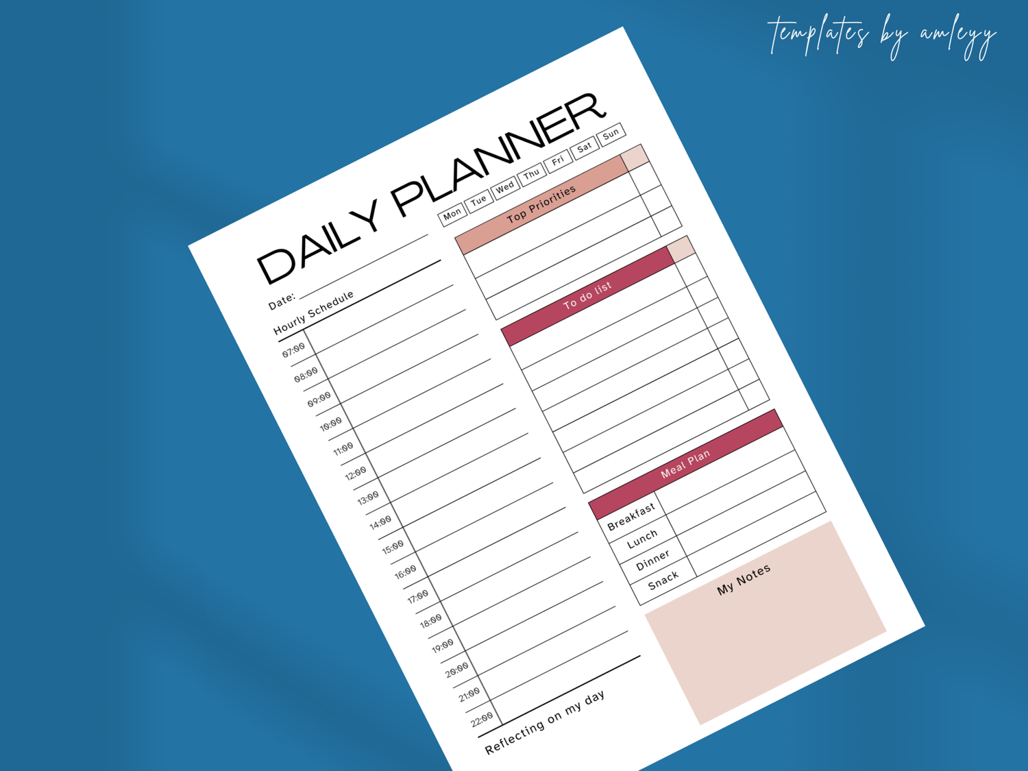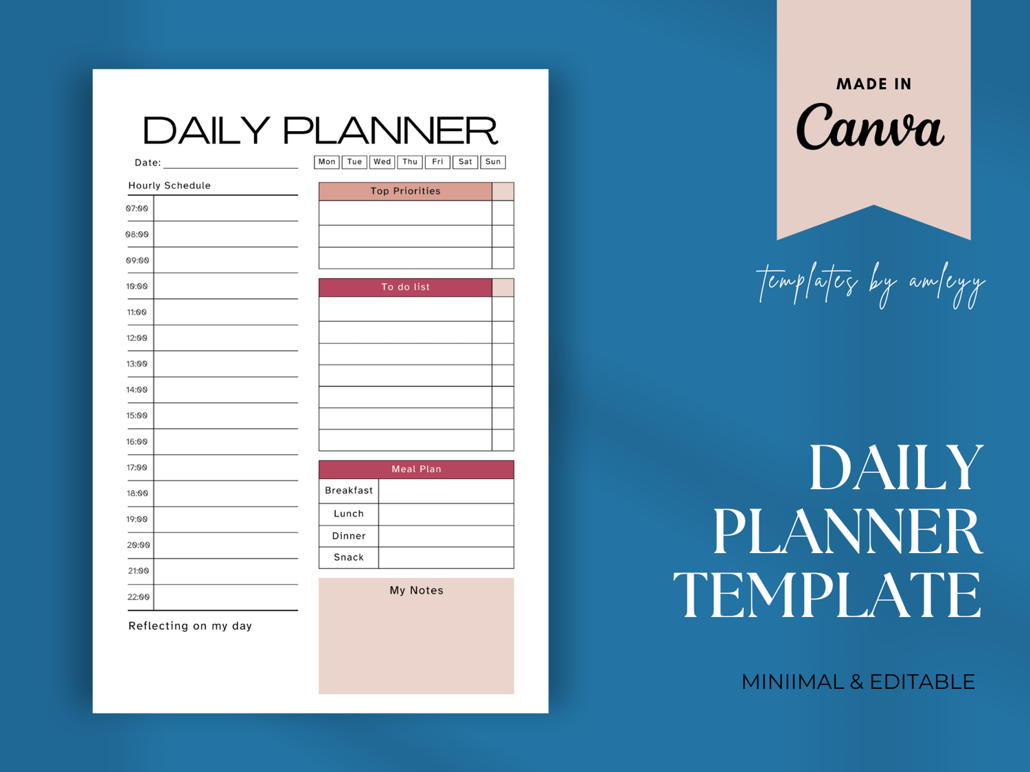 Free Daily Planner Template for Canva – Editable Minimalist Daily Planner, Printable Schedule Organizer, Aesthetic Productivity Sheet
