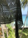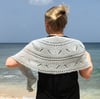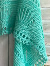 Castaway Shores is a super fun one skein crescent shaped shawl! It exudes femininity and makes for a luxurious wrap on those cooler summer evenings. Knit on large needles, it introduces you to very basic lace interspersed between rows of super relaxing garter. The seashells are pronounced with a twisted rib and lace edge detail. It is finished with a looped eyelet bind off for that little extra touch of elegance.