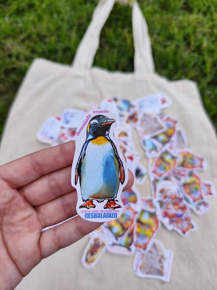 Este es un sticker gracioso de pingüino, perfecto para decorar tus cuadernos, laptop, botella de agua o cualquier superficie que quieras alegrar. ¡Espero que te encante tanto como a mí!