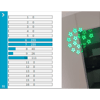* En el modo de 15CH Verifique, con una Librería de pruebas (click), que coincidan estos canales: 6 Dimmer, 7 Strobo/Shutter, 10 Prisma, 8 en el valor 40 = Color Verde, 9 en el valor 26 = Gobo de la cuarta foto, 14 Aro Led.