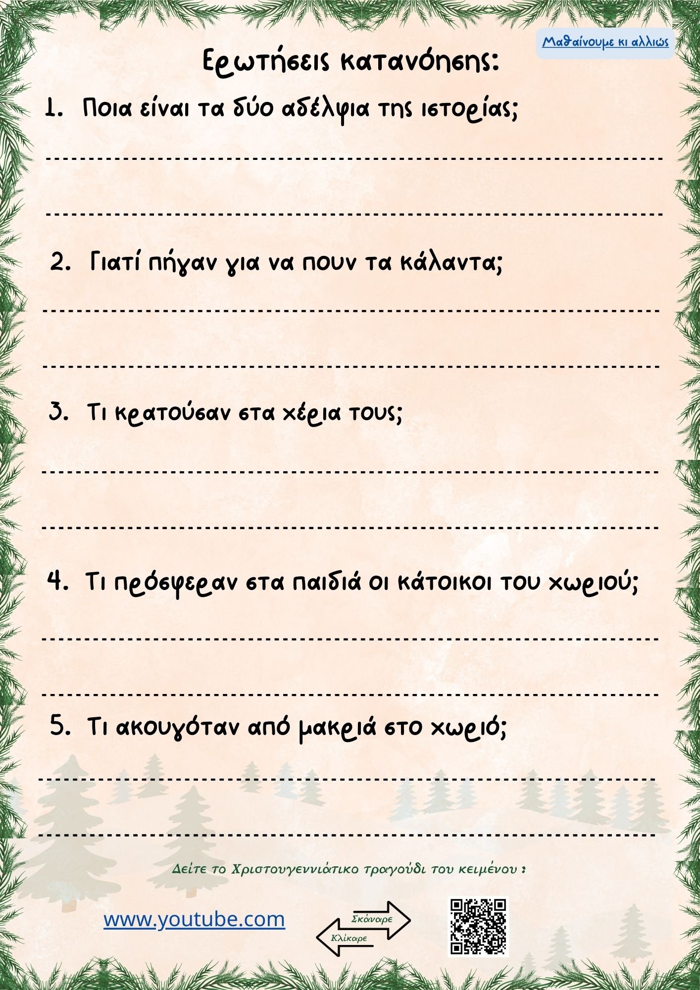 Χριστουγεννιάτικα κείμενα με ερωτήσεις κατανόησης (Β΄- Γ' Δημοτικού)