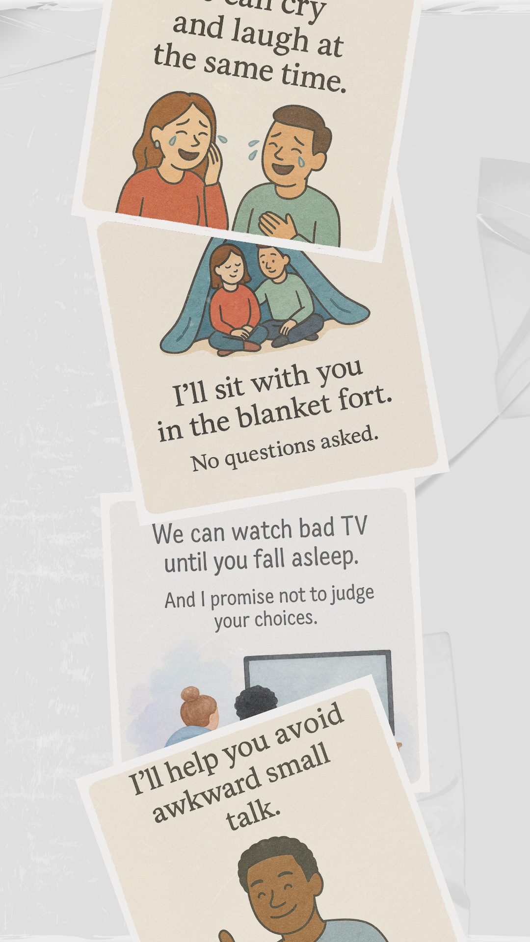Even in grief, there’s room for lightness. The Whimsy Collection uses gentle humor and playful imagery to bring a little smile in the middle of the ache.