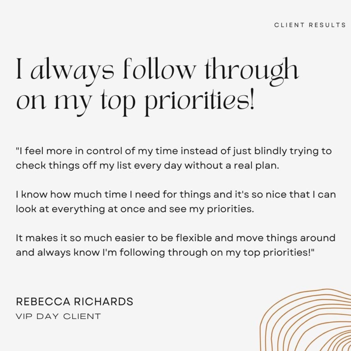 By the end of our three months, you'll have a sustainable daily and weekly rhythm that actually holds, confidence in your own system, and the accountability habits to keep going, long after our last session.