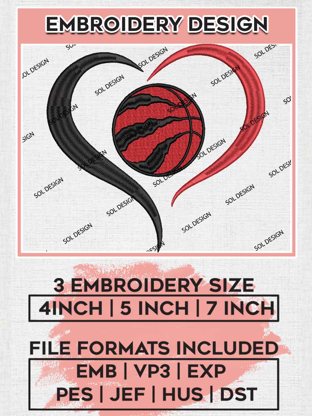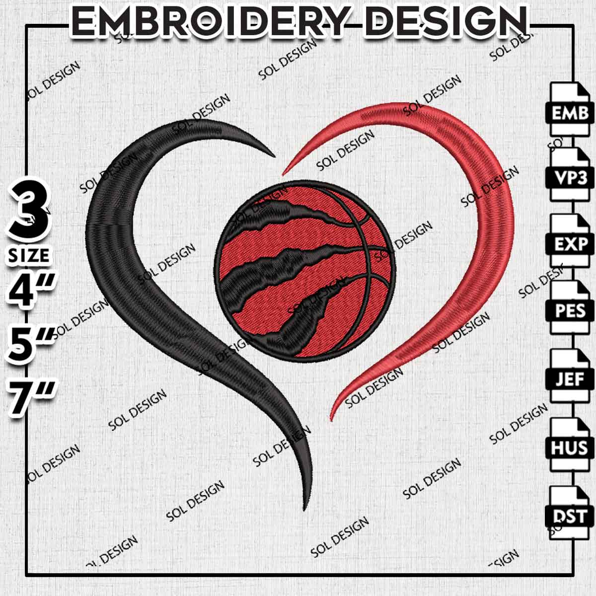 Toronto Raptors Team Heart Logo Embroidery Designs, Toronto Raptors Basketball Team Embroidery Files, NBA Raptors Team Logo Embroidery, NBA Basketball Team Machine Embroidery Design, 3 sizes, Digital Download