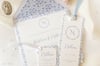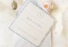 Dans la collection : Signets souvenir, faire-parts et enveloppes coordonnés, marque places, étiquettes pour dragées et menus.