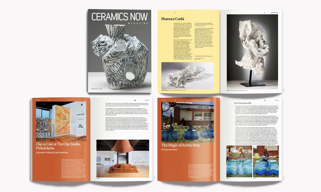This issue brings together essays, interviews, and profiles that trace the role of ceramics in shaping narratives of care, collection, and community. Debra Sloan examines the return of ceramics to the Vancouver Art Gallery. In Silent Earth, Japanese artist Kato Mami discusses her poetic practice, which reflects on impermanence, emotion, and rhythm. Jennifer Zwilling and Josie Bockelman reflect on Clay as Care at The Clay Studio, Philadelphia, while Susannah Israel revisits the creative spirit of The Archie Bray Foundation, capturing its magic across generations.
