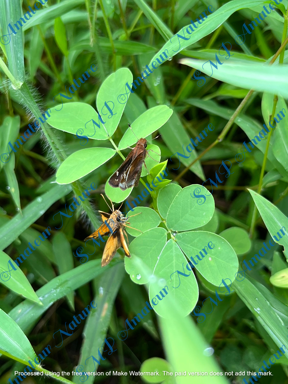 Amateur photograph of both a male and a female Zabulon Skipper (Lon zabulon) as they court each other among some leaves. Image taken in Virginia, USA. Image pixels 3024x4032. Image easily resized as required for buyer needs. Purchase gives image without any watermark.
