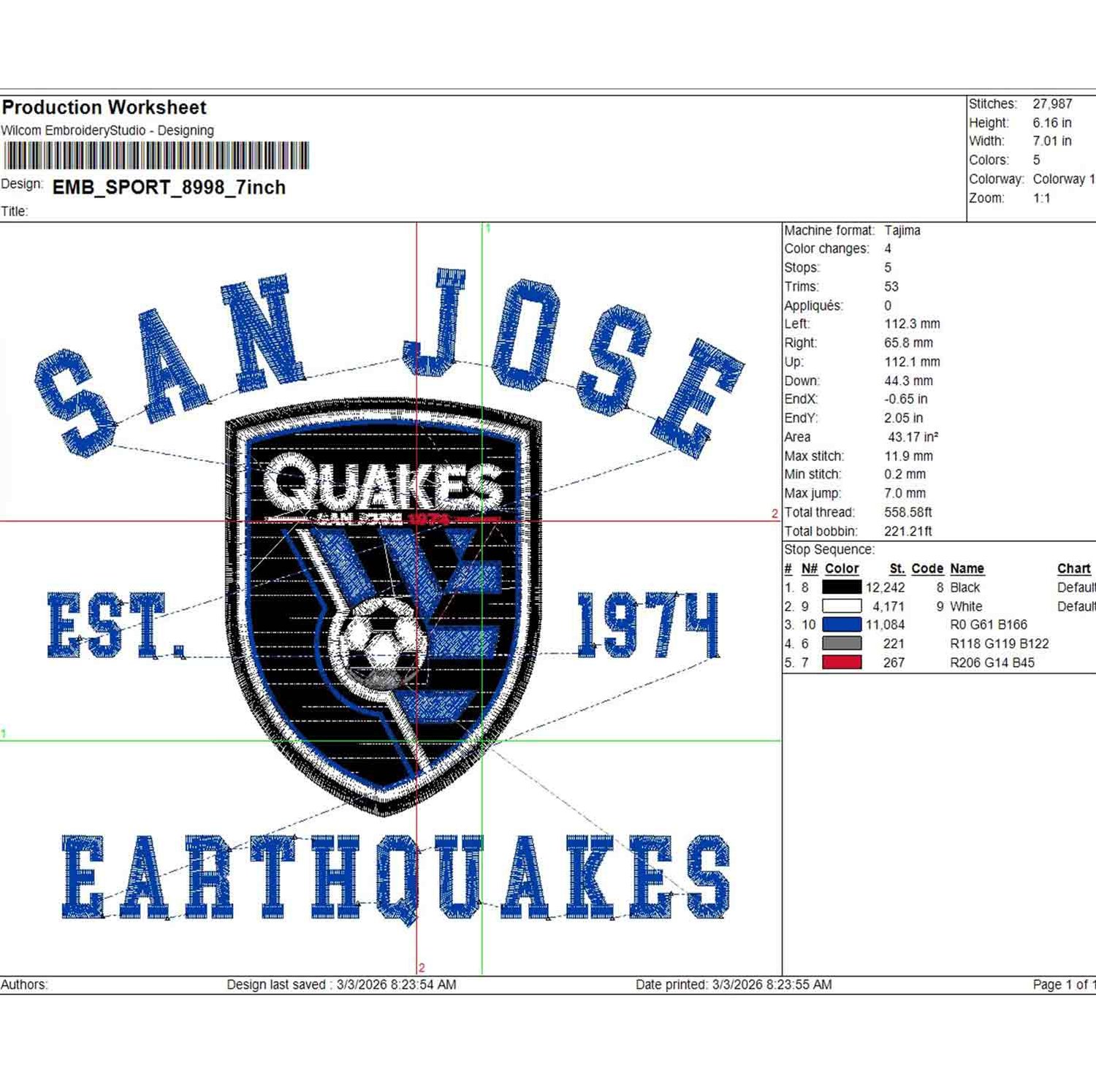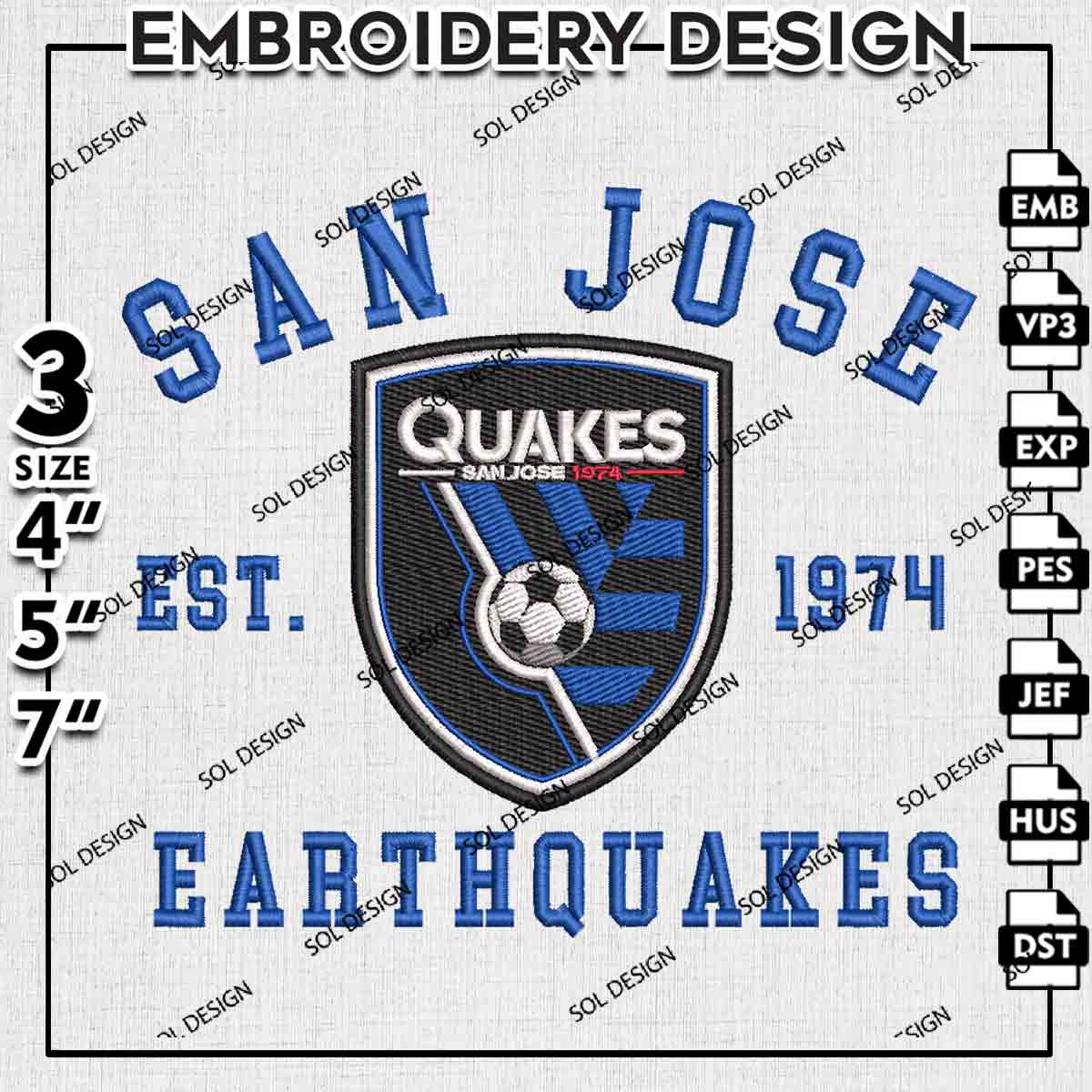 MLS San Jose Quakes Est 1974 Logo Embroidery Designs, San Jose Earthquakes Embroidery Files, MLS Earthquakes Logo Embroidery, Major League Soccer Machine Embroidery Design, Digital Download