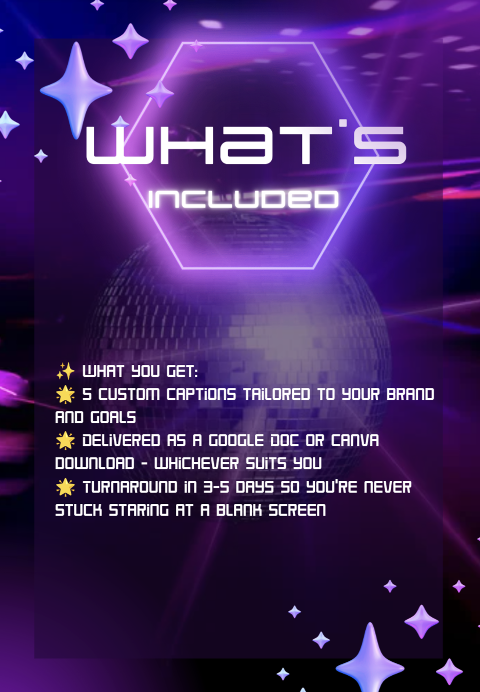✔️ 5 original captions written just for your business