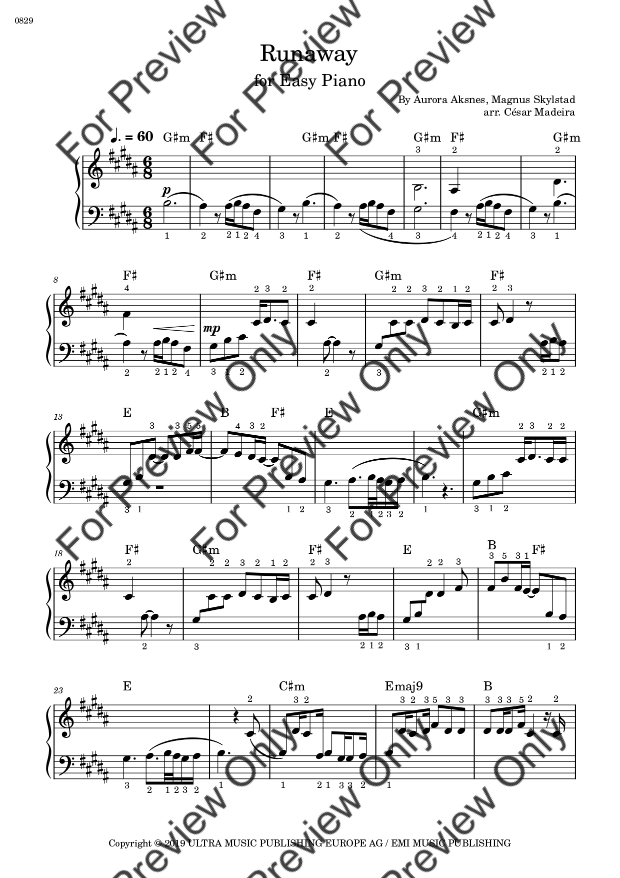 Runaway by Aurora. Arrangement for Beginner/Easy Piano. With Full Score. Have fun!