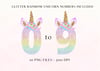 Rainbow Glitter Unicorn Alphabet Letters A to Z and Numbers 0 to 9 - Sublimation Ready Digital File