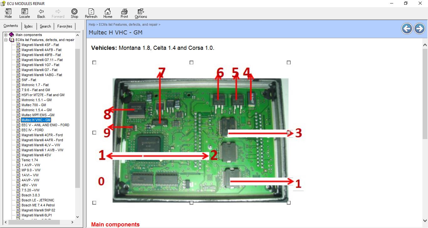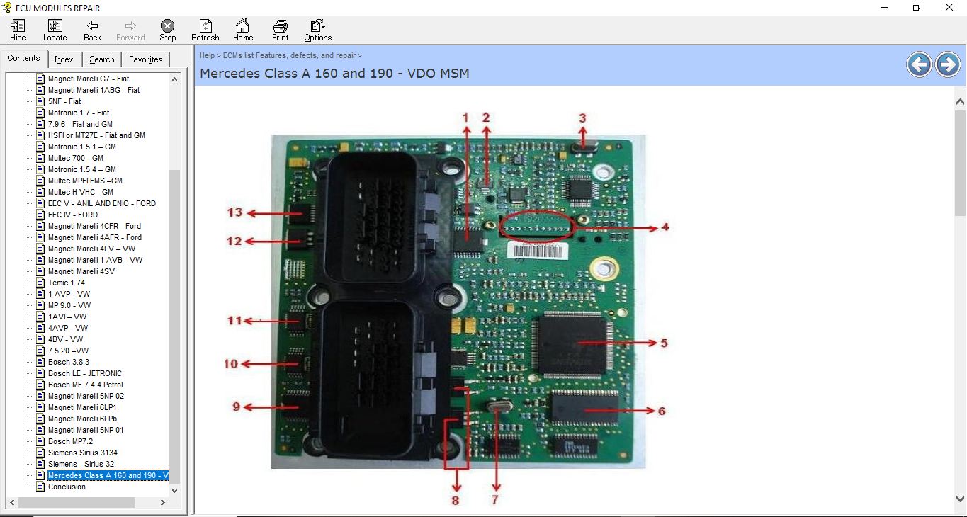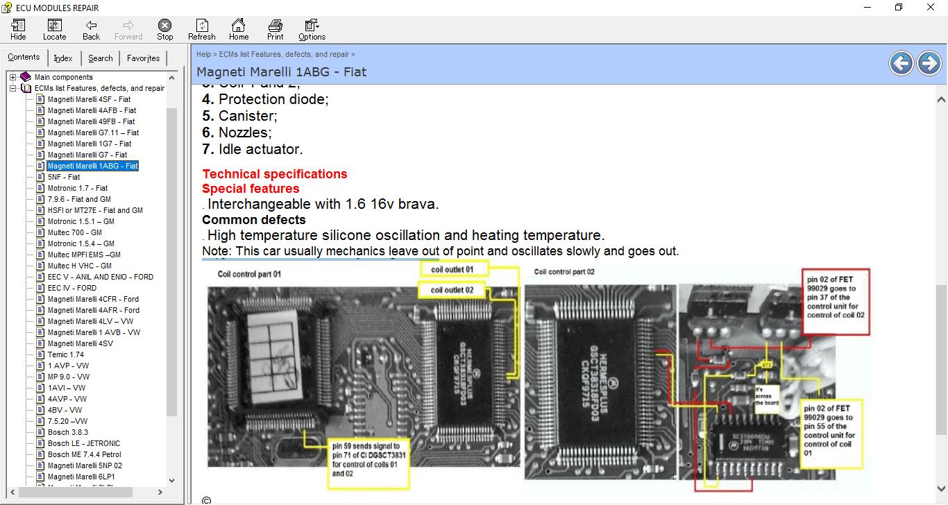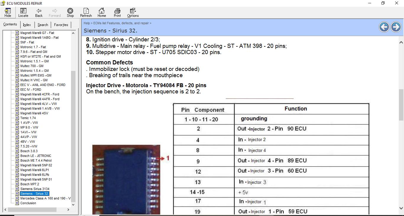 ECU Repair Helper E-Book, which contains the description and location of the component for many ECUs as well pinout for this component , common fault that you can encounter and how to fix it, and immo location