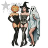 Gothic Halloween Pin Up Trio PNG | Pumpkin Head, Skeleton Witch & Ghost Girl | Retro Vintage Halloween Sublimation Design 300 DPI