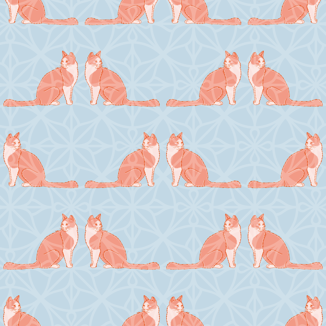 Cute happy cat pattern illustration. Kawaii kitten seamless vector background.