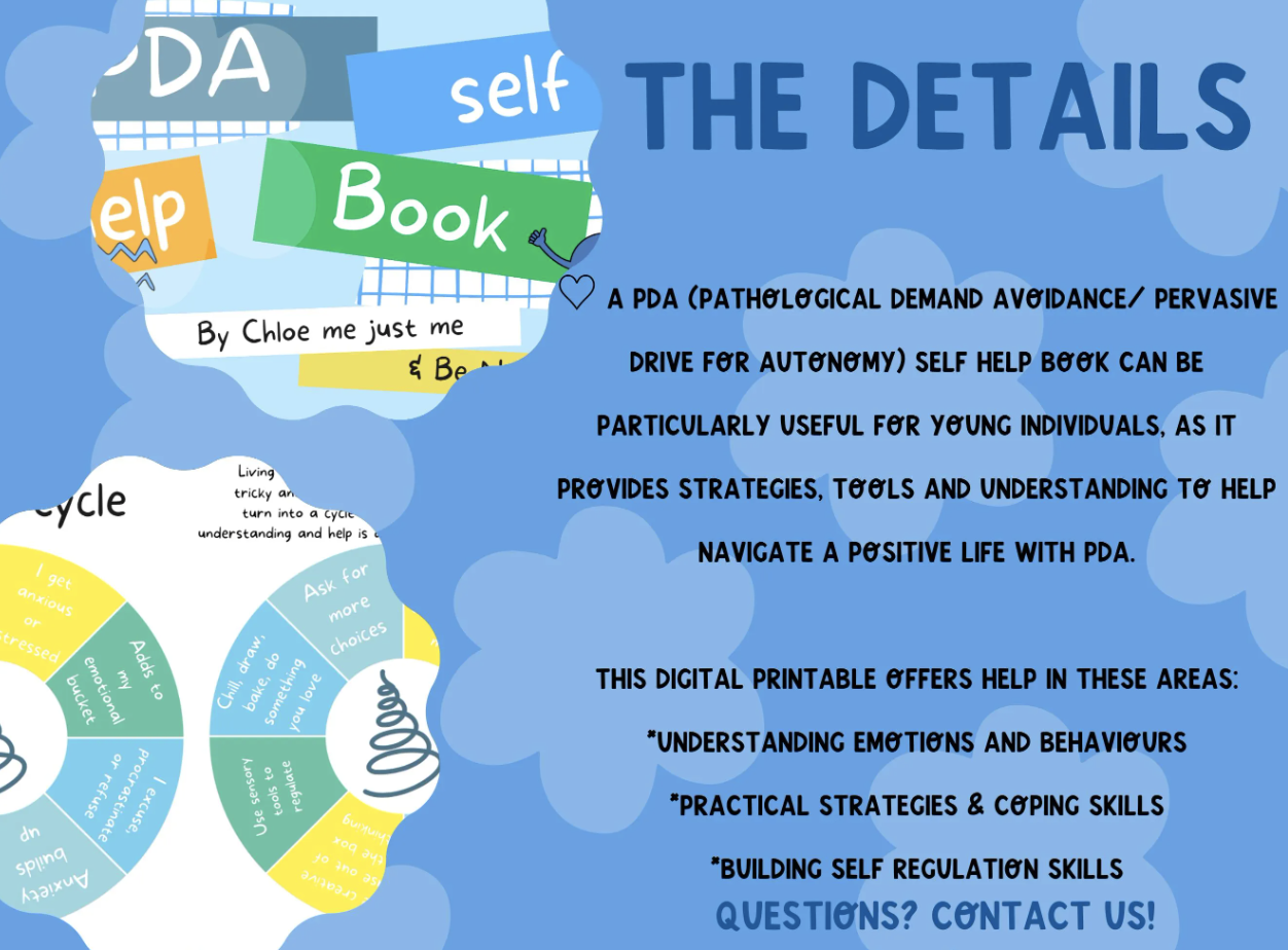 1. Self understanding and validation: Our PDA self help book helps children recognise and understand their own behaviour, thoughts and emotions. For children who often feel "different" this kind of resource can validate their experiences , making them feel seen and understood.