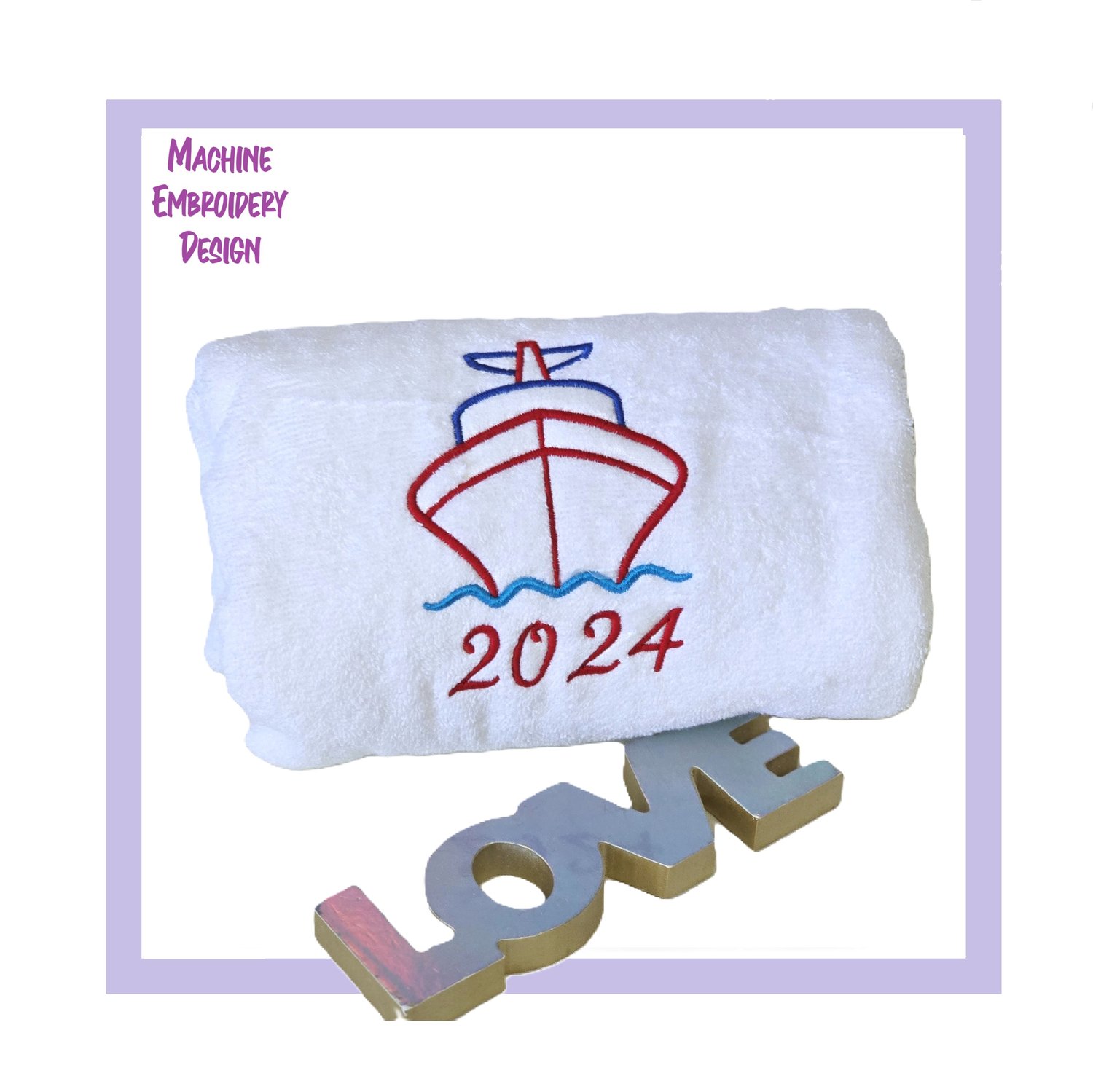 My First Cruise is a beautiful embroidery design. It's perfect on towels, blankets and more!