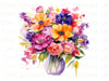 Purple & Orange Watercolor Flower Bouquet Png Sublimation Design, Commercial Use