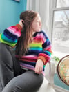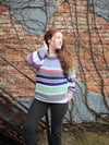 This is an instant download PDF pattern for the Rainbow Stash Striped Sweater in sizes XS, S, M, L, XL, 2X, 3X, 4X, and 5X.