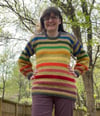 Knitting Pattern, Rainbow Stash Striped Sweater, Beginner Sweater Pattern in Aran/Worsted weight, sizes XS-5X