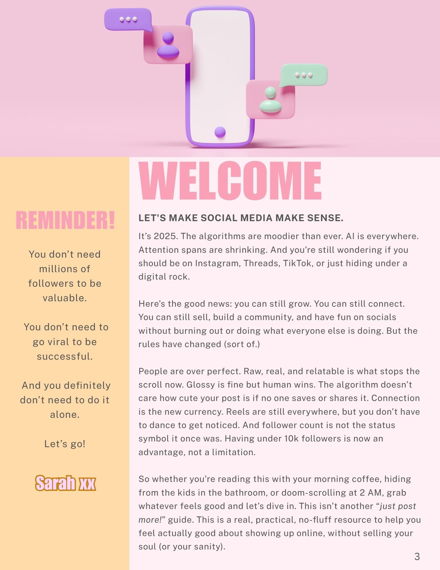 Created by a content creator and social media manager, who’s navigated the ups and downs of social media growth, this playbook shares years of real-world experience in a way that’s easy to understand and genuinely helpful. It cuts through the overwhelm with practical tips on finding your niche, planning content, building community, and even monetising your efforts, all written in a warm, conversational tone that feels like chatting with a friend.