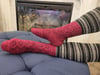 Finished foot circumference: 6.75 (7, 7.5, 8, 8.5) inches/ 17 (18, 19, 20.5, 21.5) cm - choose a size with approximately 1 inch/2.5cm negative ease in the foot circumference