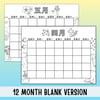 - 12 Pages of blank Calendar (for write-in), one page for each month, in traditional Chinese. Please note that the blank version does not include the year at the top.