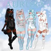 โฉ Toggles: (expressions, skin swap, ear swap elf/human, eye swap brown/blue, eye hue, wardrobe hue, nail color swap, eyebrow color swap blonde/black/white, body swaps, hair color, face swaps, wardrobe color swap, mirrorball dress, mirrorball boots, megaphone, utopia heels, stomper boots, stomper boots with extra platform, snow/fog, aurora trails, snowflake trails, snowflake steps, rave wings, rave wings with trails, rave wings w/o trails, horns, kitty tail, kitty ears, kitty color swap, outfit rgb, tattoo rgb, earmuffs, eyepatch, mask, nose ring, moon, collar, backpack, breastmilk, armor, armor boots, armor bodysuit, utopia bodysuit, bra, thong, shorts, stockings, sleeves, arm chains, harness, thong harness, arm bandage r, arm bandage l, garter r, garter l, hip frills, shoulder frills)