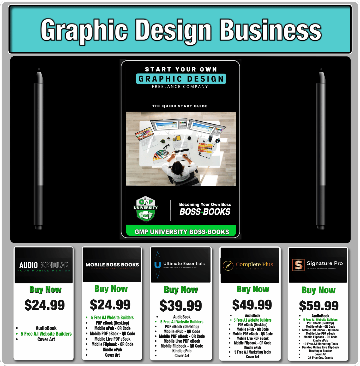 Graphic Design Business - Audio Scholar - GMP University (AudioBook) With 5 Free A.I Website Builders