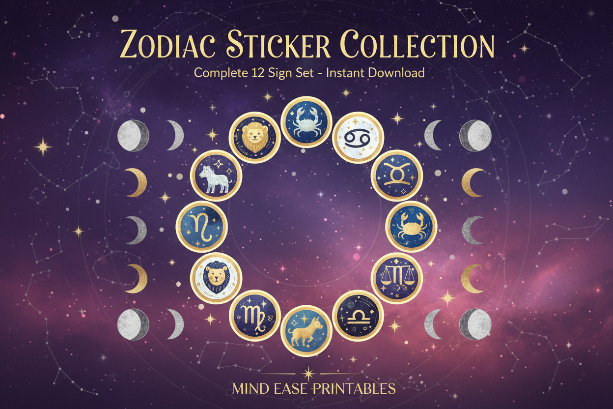 ZODIAC STICKER PACK - Complete 12 Sign Collection | Aesthetic Celestial Designs