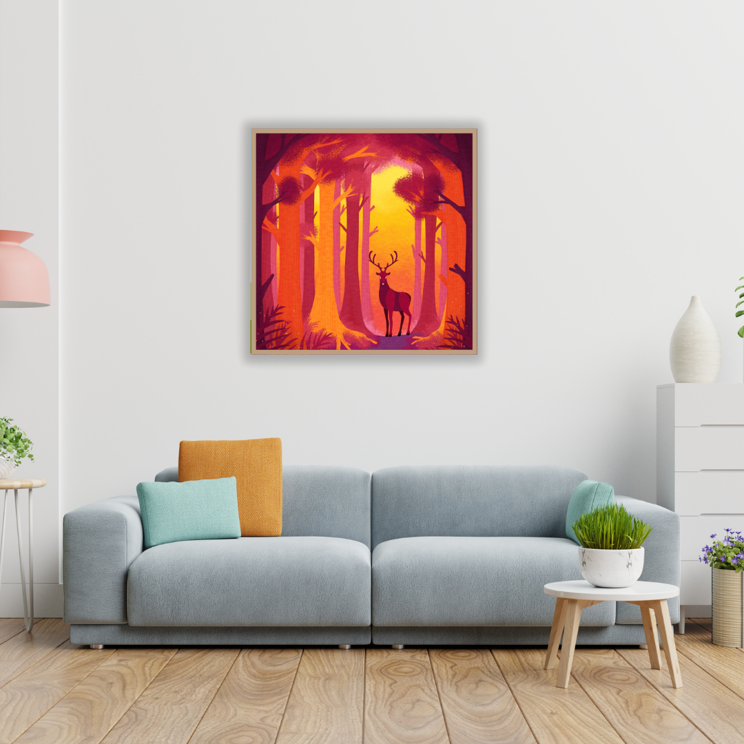 Where the Deer Stands suggests a place of quiet significance, a clearing where the forest’s presence seems to gather and pause. The deer stands calmly in warm, glowing light, not as a spectacle but as a constant—an unspoken ruler who belongs entirely to this space. The surrounding trees frame him like witnesses, as if this moment has happened countless times before and will happen again once the observer moves on. There is no interruption or confrontation, only the sense of passing through a sacred stillness, where one briefly glimpses the forest’s balance and acknowledges it without disturbing it, leaving the deer to continue standing where it always has.
