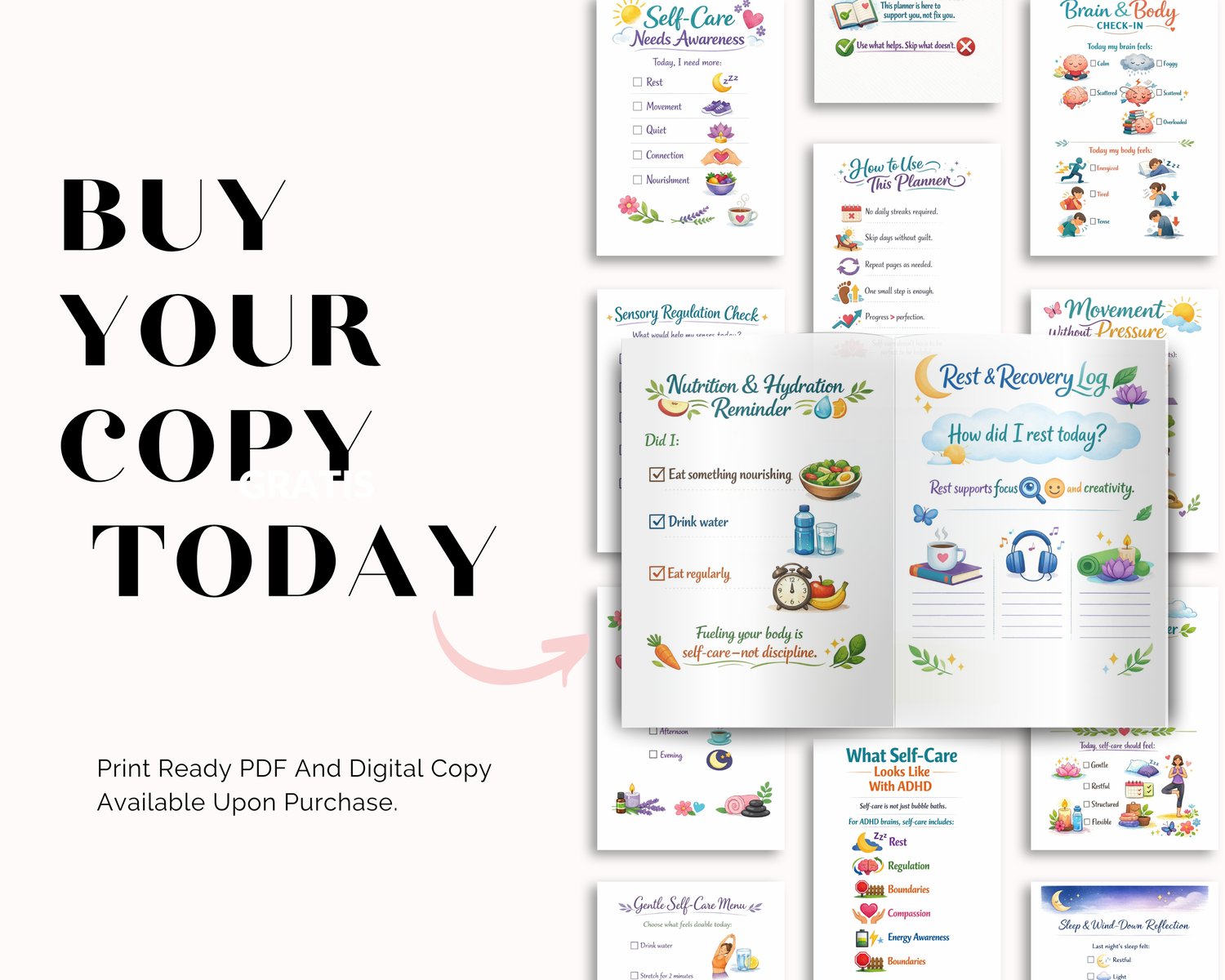 ADHD Self-Care Planner | 30-Page Digital Planner for Women with ADHD | Daily Self-Care Tracker | ADHD Friendly Planner | Mental Health Planner | Neurodivergent Planner | Mood Tracker | Brain Dump | Instant Download PDF