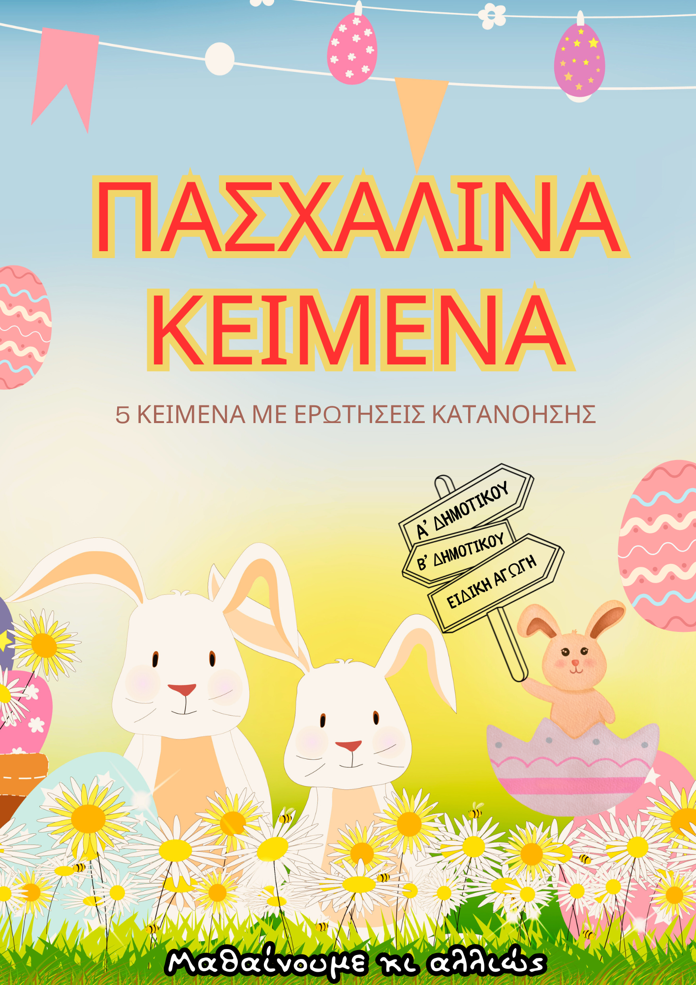 Το βιβλιαράκι αυτό περιλαμβάνει πέντε κείμενα με θέμα το Πάσχα τα οποία απευθύνονται σε παιδιά Α΄- Β΄ Δημοτικού και σε μαθητές Ειδικής αγωγής. Κάθε κείμενο συνοδεύεται από μία εικόνα καρτούν και 5 ερωτήσεις κατανόησης.