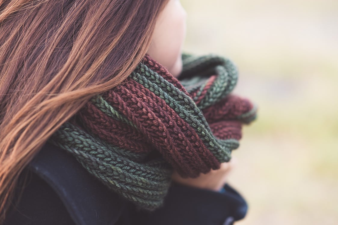 The knitting is easy, although almost all the techniques may be new to most knitters. This is a super cozy, oversized cowl that will shelter you from the fiercest of storms. The double garter stitch pattern is worked on every one of its 52 rows. The two selvage ends are joined together in an intriguing and attractive double bind-off similar to three-needle bind-off.
