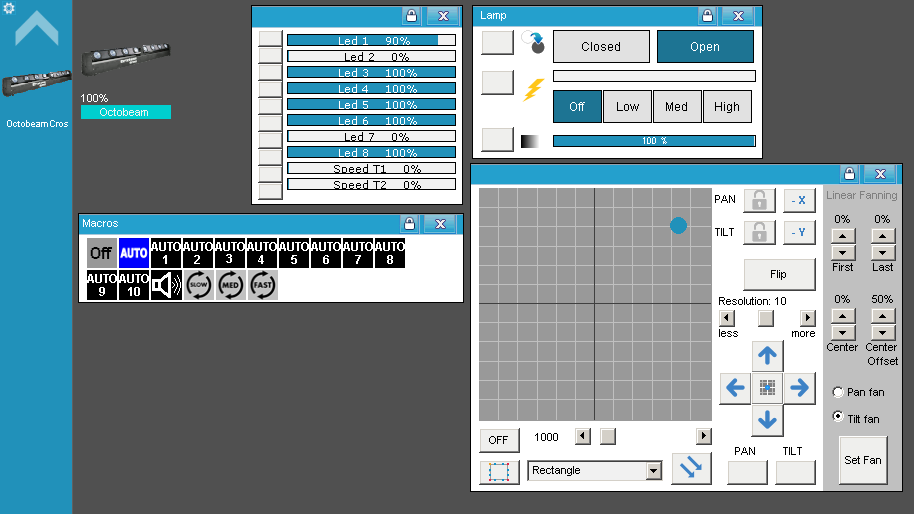 • Control individual de cada barra desde el Panel de Pan / Tilt (El Pan mueve la barra 1 y el Tilt la barra 2)