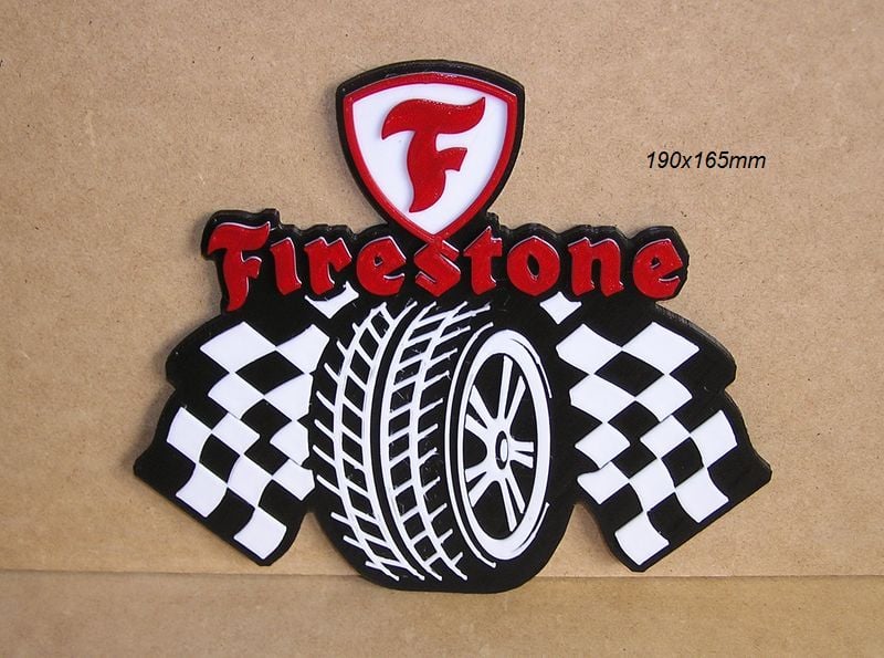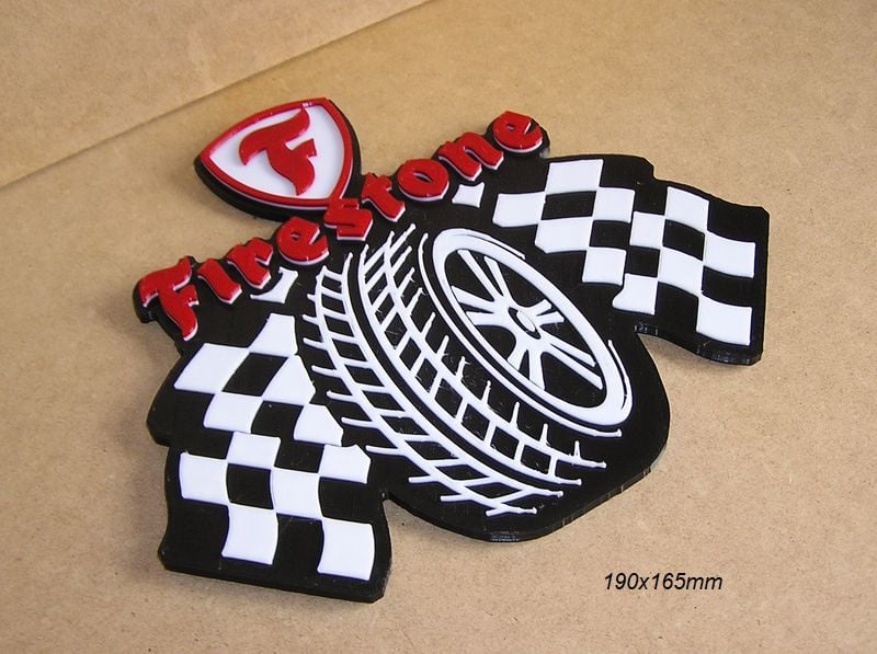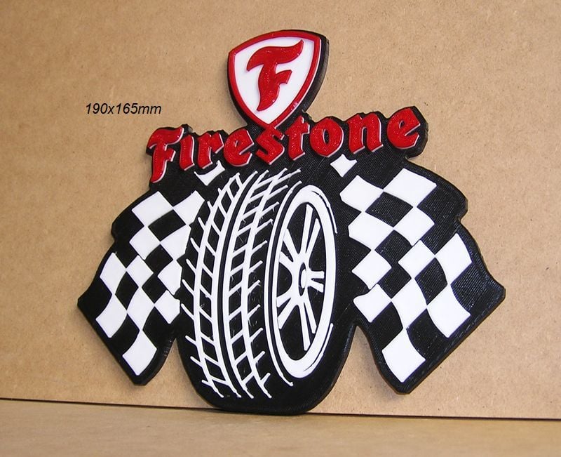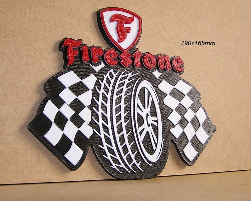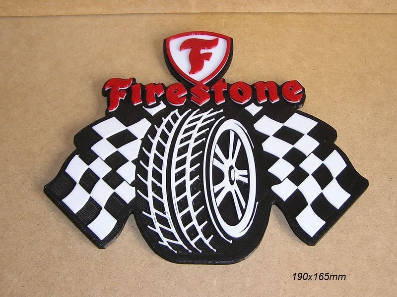 Firestone, Tire brand logo poster, these STL and Gcode files have been created to be printed in various colors with any FDM type printer. The color changes have been made with the Elegoo Neptune 3 Pro printer, but they can be printed on any printer.