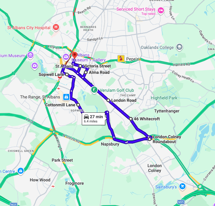 Practise real driving test routes in St Albans before your exam – open directly in Google Maps