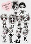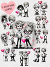 Quirky couples. 10 readymade couples + 20 clipart dolls to mix & match your couples. Separate background is included