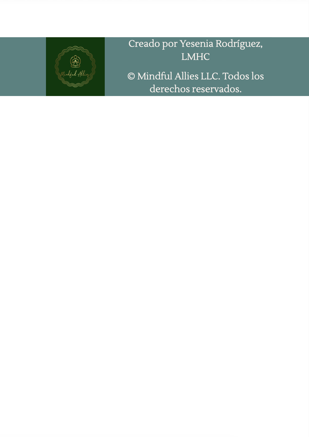 Creado por una Consejera de Salud Mental Licenciada (LMHC), el Registro de Seguimiento de Disociación ofrece un marco estructurado para reconocer cuándo ocurre la disociación, qué factores pueden desencadenarla y cómo impacta el funcionamiento diario. La disociación puede sentirse confusa o impredecible—este registro ayuda a transformar esas experiencias en información significativa que favorece la conciencia, la regulación emocional y la planificación terapéutica colaborativa.