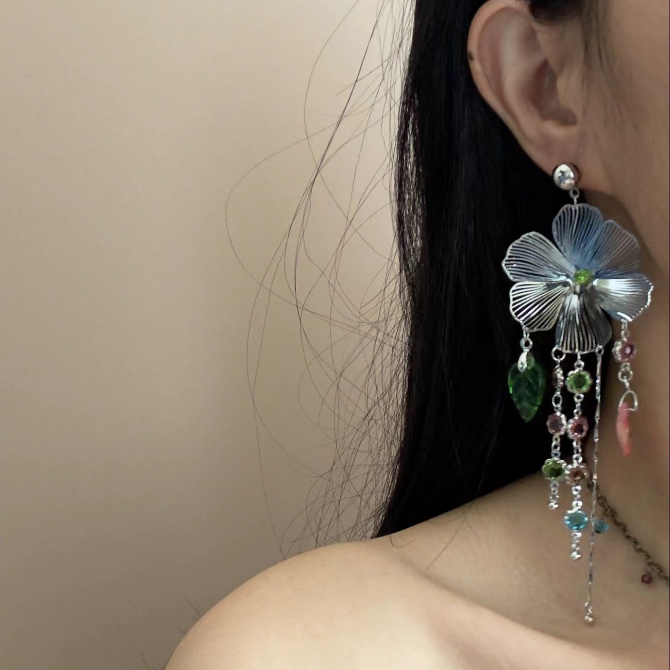 Vintage style heart choker big flower earrings stacking pendant necklace