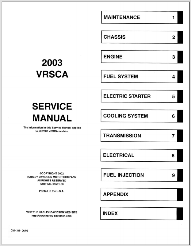 2003 Harley Davidson VRSCA Model Service Manual (P/N 99501-03)