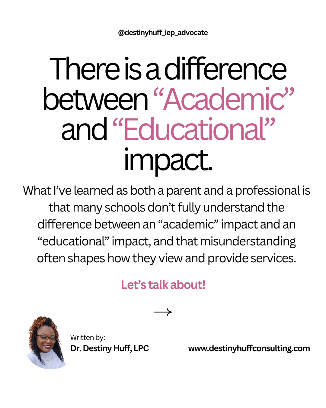 What I’ve learned as both a parent and a professional is that many schools don’t fully understand the difference between an “academic” impact and an “educational” impact, and that misunderstanding often shapes how they view and provide services.