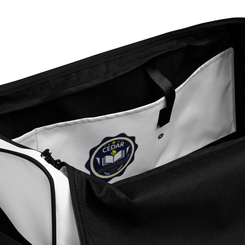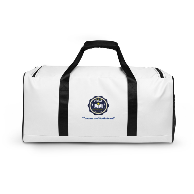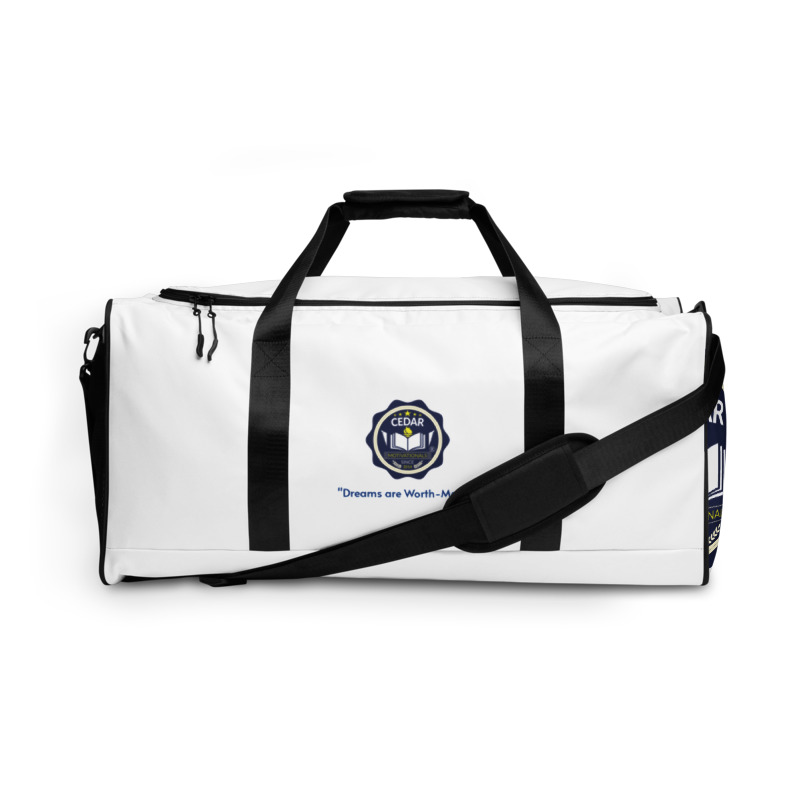 CEDAR DUFFLE BAGS VIPs -This All-Over Print Duffle Bag is the perfect spacious bag no matter the occasion. It’s great for packing exercise gear when heading to the gym, or throwing in necessities and going on an adventure. Your stuff will stay organized and safe with the bag’s multiple inside pockets. The bag’s shoulder strap is adjustable or removable, while the dual padded handles with velcro fastening ensure easy carrying. This bag have it all!