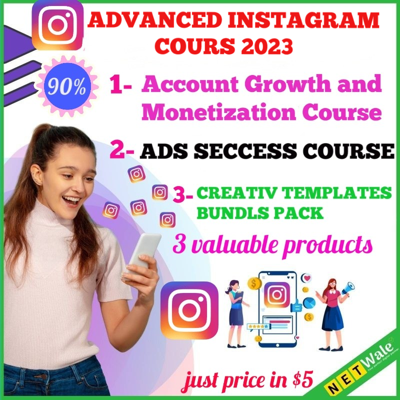 ADVANCED INSTAGRAM COURSE 2023 1) Instagram Marketing : Account Growth and Monetization Cours 2) Instagram Ads seccess Cours 3) Instagram Mega Bundle Template Pack