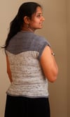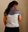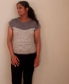 Fluens is a drop-shoulder lightweight tee with crew neckline and a fun color-block detail. The color blocking is done using short rows, making the two colors appear to flow smoothly into each other creating some visual interest. The word “fluens” simply means flowing or streaming.